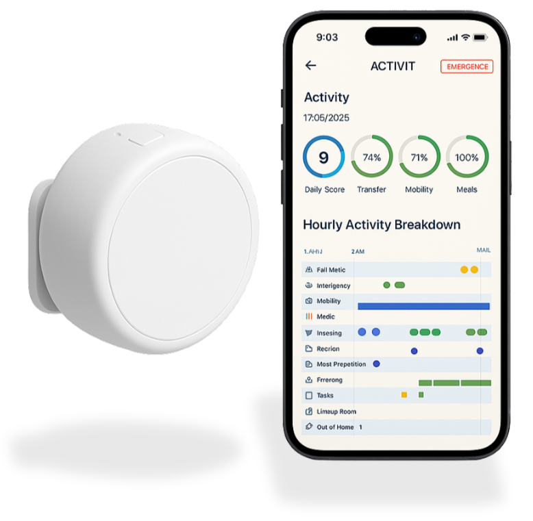 Passive, privacy-first monitoring—no wearables, no cameras—so you feel supported without feeling watched.